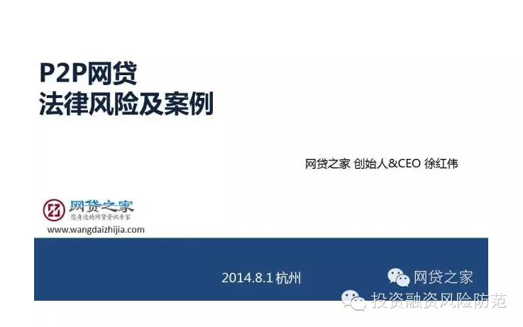 导语:PPT为网贷之家CEO徐红伟受邀到杭州阿里巴巴做互联网金融调研时,分享的关于P2P网贷法律风险及案例方面的内容。今天特意拿来与诸位好友共享,干货很多,请在WIFI环境下打开,慢慢享用~ |